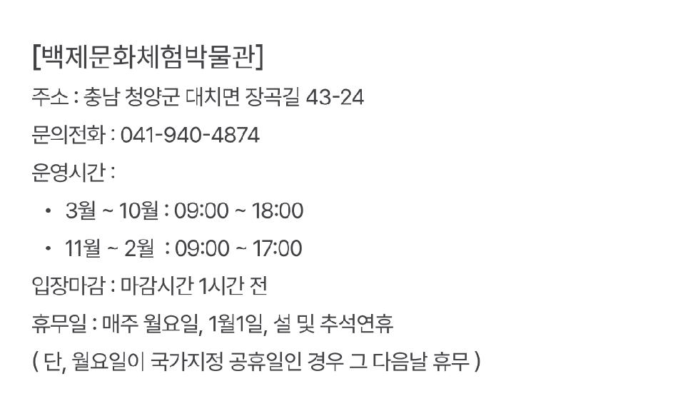 * ÇÏÀý±â(3~10¿ù) : È­~ÀÏ 09:00 ~ 18:00 // ÀÔÀ帶°¨ : 17:00